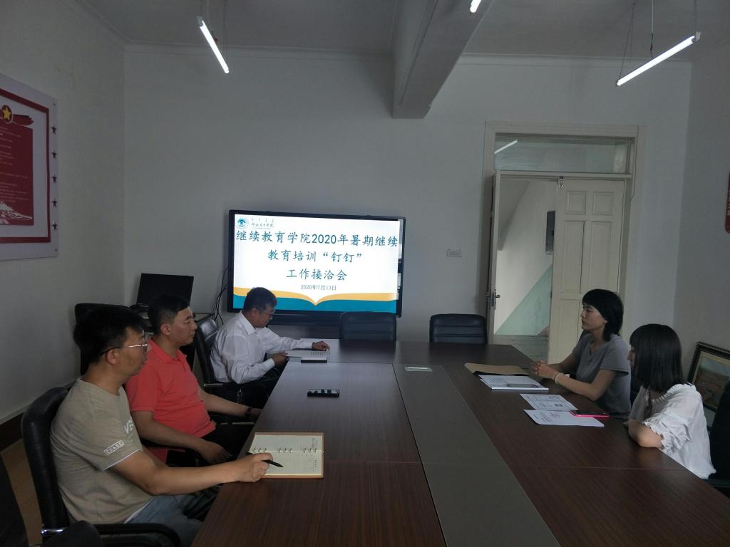 7月13日下午,太阳成集团tyc122ccvip院举行“2020年暑期中学教师继续教育培训‘钉钉’合作洽谈会”。 2020年暑期中学教师继续教育培训由集中面授改为线上培训,培训具有人员数量大、学科多、班级多等特点,几千人同时授课,是对公司线上教学管理的“重大考验”。为此,公司特与“钉钉”平台区域负责人多次协商,对“组织构架”、“人员上限”、“班级管理”、“人员录入”、“合班授课”、“公司考勤”、“线上评教”等多项事宜达成了协议,并办理了相应手续。培训学员只需下载软件并注册即可进入指定班级,既简化了操作流程,也便于班级学员管理,可实现授课、互动、签到、考测布置等诸多功能。
