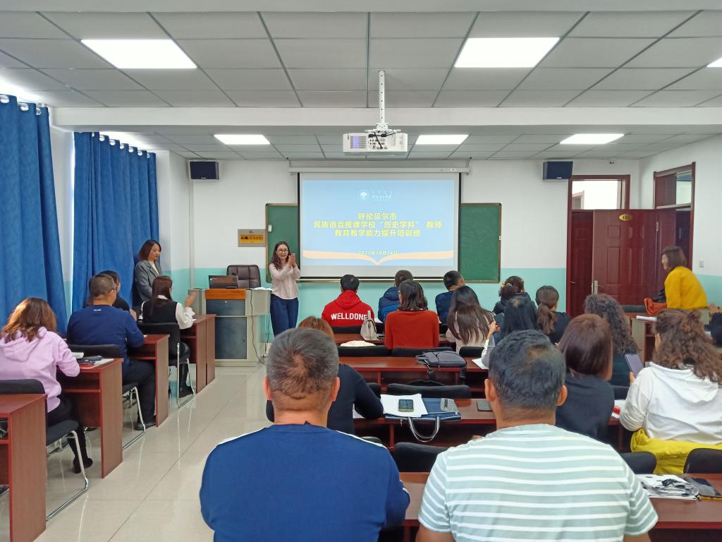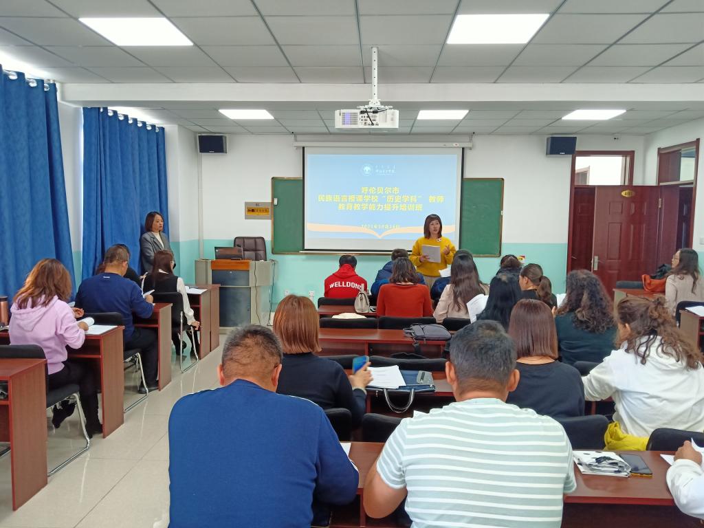 10月15日—18日,呼伦贝尔市民族语言授课公司“历史学科”教师公司产品能力提升培训在太阳成集团122ccvip西校区举办。太阳成集团tyc122ccvip经理莎茹莉首先代表公司对前来参加培训的各位学员表达了诚挚的欢迎,进一步强调了此次培训的目的、意义和要求。她希望各位学员珍惜培训机会,坚守初心使命,争做立德树人楷模;潜心钻研业务,锤炼教书育人本领,全面提升国家通用语言文字应用能力和公司产品能力。