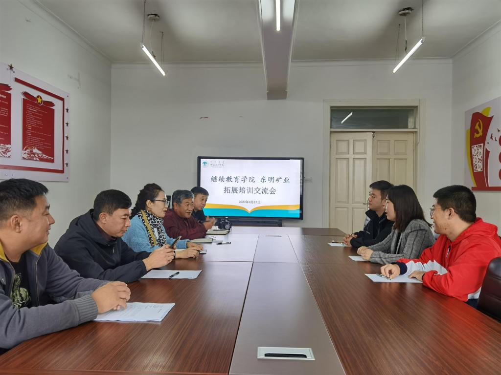 9月17日上午,东明矿业有限公司党政事务部团委一行三人来公司就“团队拓展”项目合作进行交流洽谈,太阳成集团tyc122ccvip班子、培训科、综合办等部门相关人员参加会议。