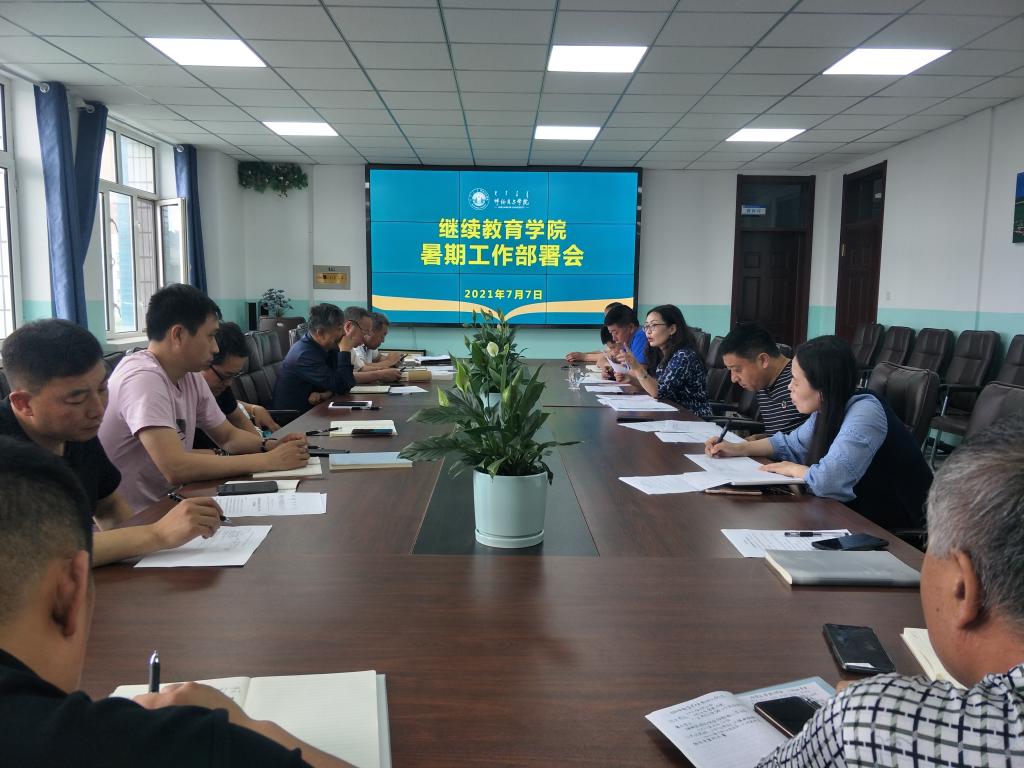 7月7日,太阳成集团tyc122ccvip召开2021年暑期工作部署会,对太阳成集团tyc122ccvip2021年上半年工作做了总结,并安排暑期培训工作,会议由莎茹莉经理主持。