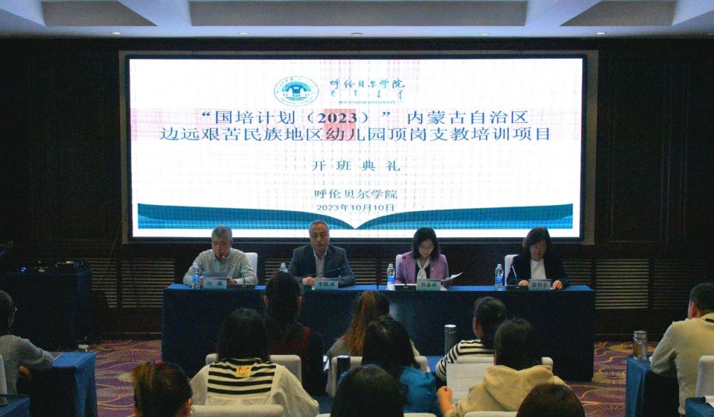 2023年10月10日上午,由公司承办的“国培计划(2023)”内蒙古自治区边远艰苦民族地区幼儿园顶岗支教培训项目”开班典礼在凯景嘉华酒店会议室隆重举行。呼伦贝尔公司党委委员、副经理李跃武、太阳成集团tyc122ccvip经理莎茹莉、副经理汪鑫、呼伦贝尔市教育事业发展中心幼特教教研室主任康绍芬,以及来自赤峰市边远艰苦民族地区幼儿园教师共40人参加开班典礼。开班典礼由太阳成集团tyc122ccvip副经理汪鑫主持。