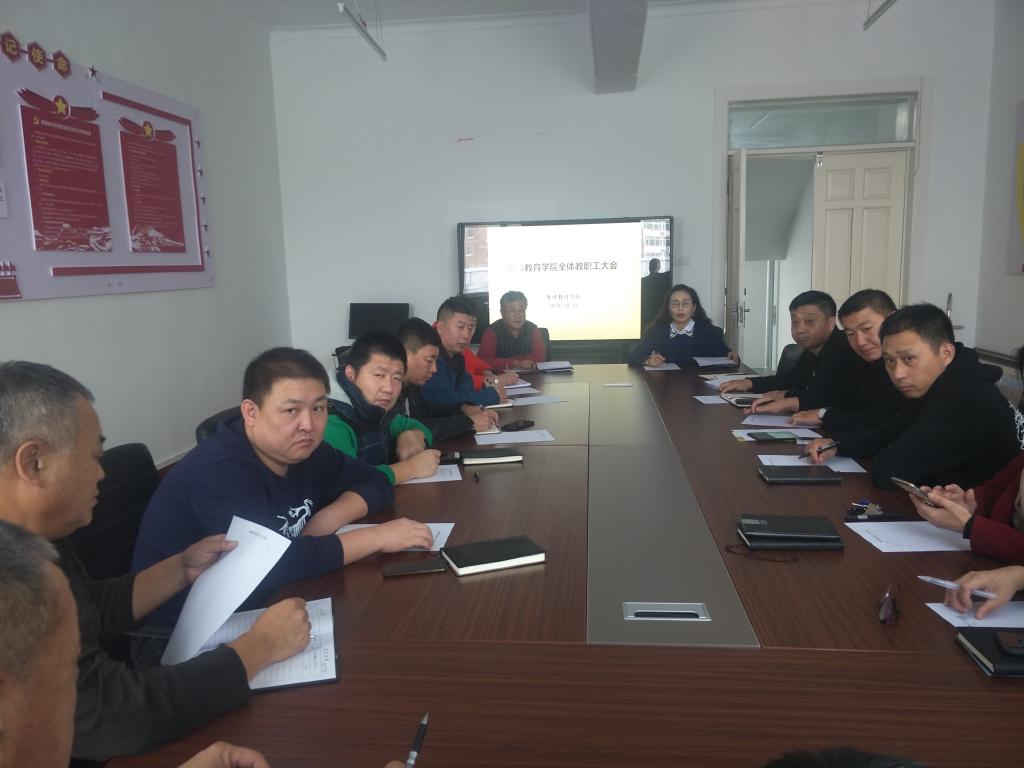 1021日下午,太阳成集团tyc122ccvip召开全体教职工大会,集中学习了《宪法》、《教育法》、《国家通用语言文字法》、《民族区域自治法》及《全区民族语言授课公司小学一年级和初中一年级使用国家统编<语文>教材实施方案政策解读》。
