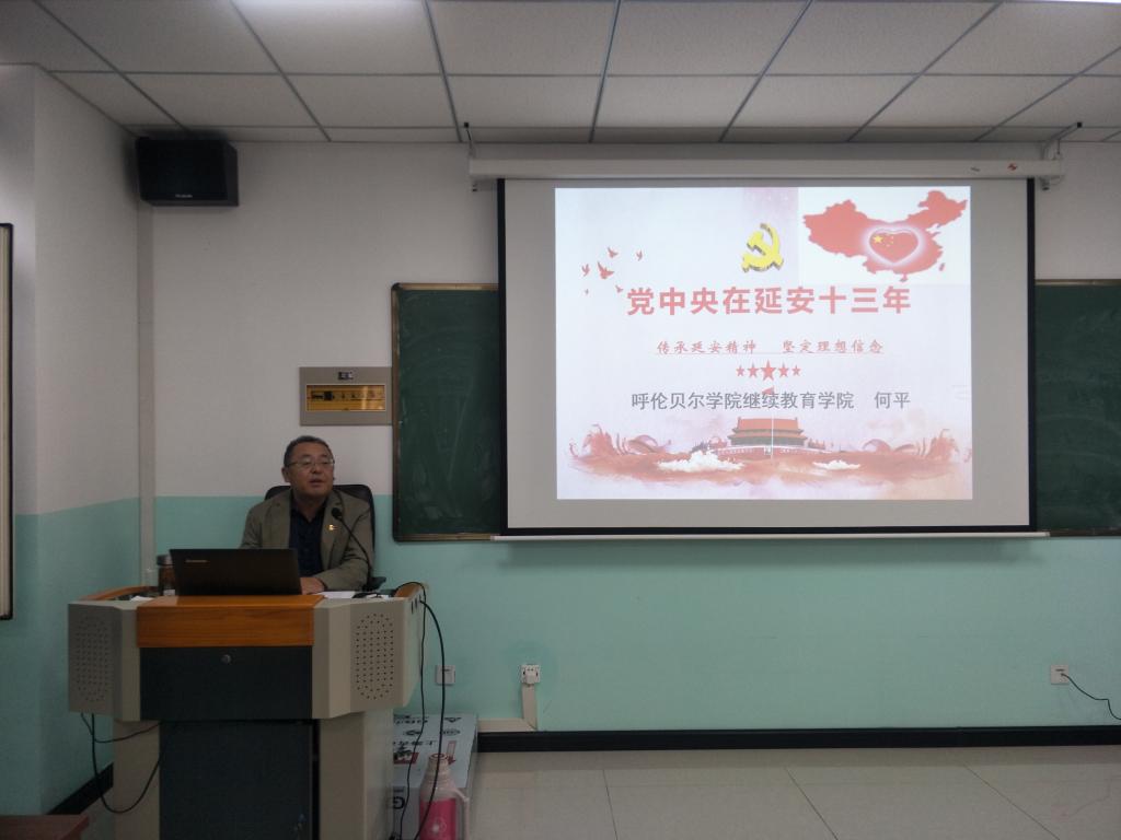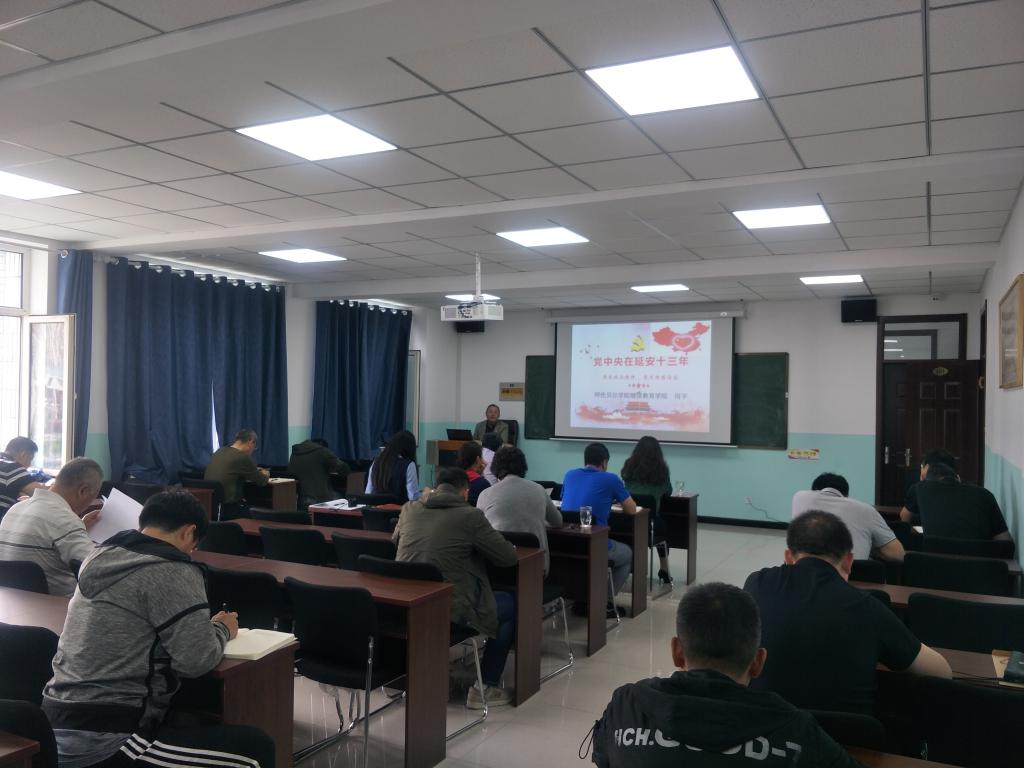 6月9日下午,太阳成集团tyc122ccvip组织开展支部书记讲主题党课活动,全体教职工参加,何平书记作了题目为《党中央在延安十三年---传承延安精神  坚定理想信念》讲座