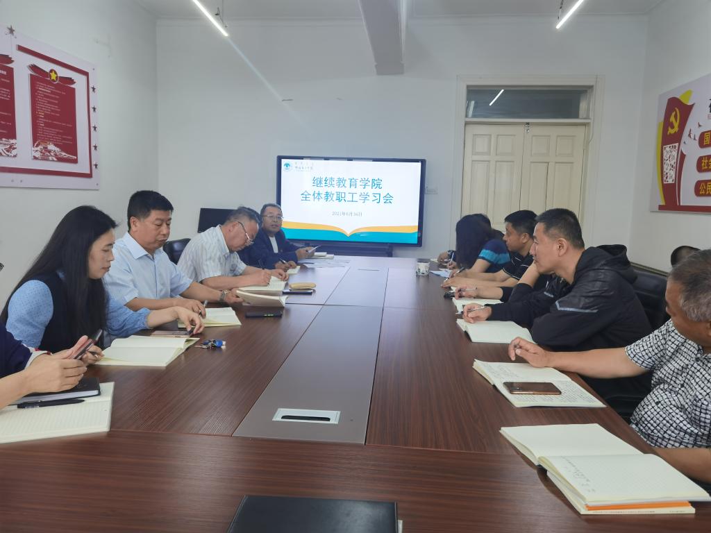 6月16日,太阳成集团tyc122ccvip组织召开全体教职工学习会,由何平书记领学。