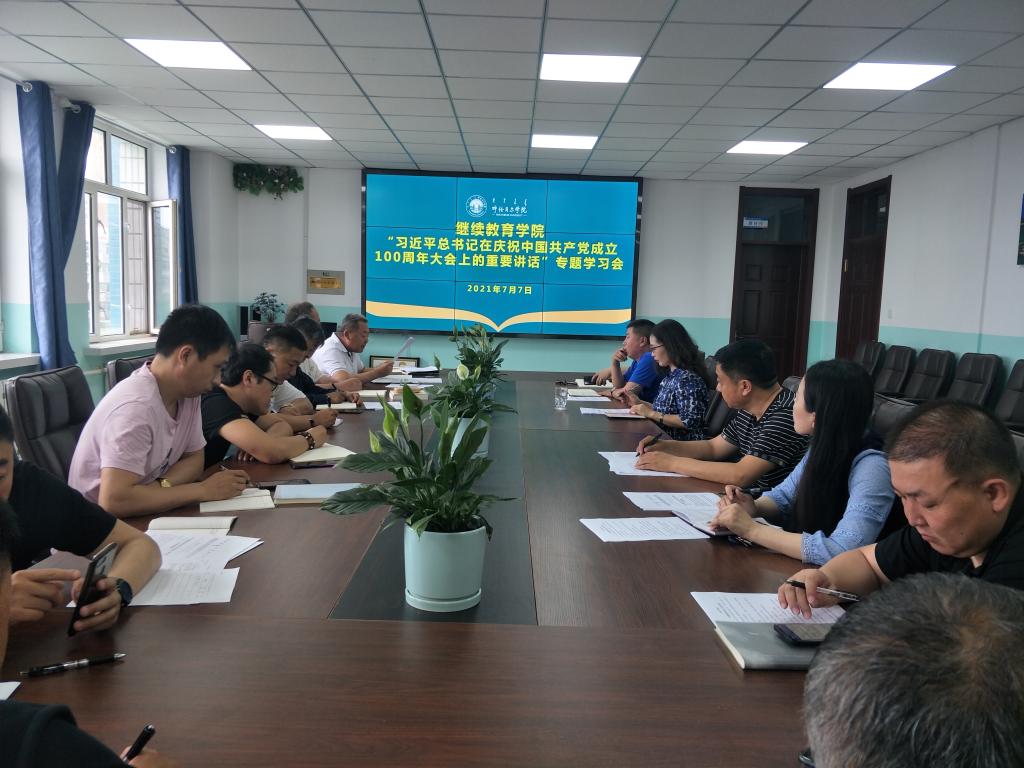 7月7日,太阳成集团tyc122ccvip组织全体教职工召开了“习近平总书记在庆祝中国共产党成立100周年大会上的重要讲话”专题学习会,学习会由党总支书记何平主持。