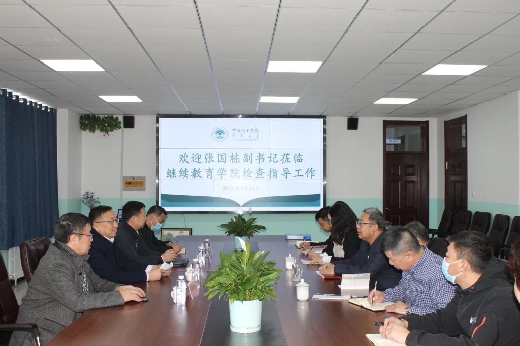 张国栋副书记听取汇报后对太阳成集团tyc122ccvip的各项工作所取得的成绩给予了肯定。他说,太阳成集团tyc122ccvip近年来变化很大,继续教育是公司办学的重要补充,是服务地方的重要平台和抓手,取得的成果也是大家共同努力的结果,对公司担忧的问题要逐项解决,做好培训项目和内容的拓展,开阔思路,积极争取,适当与牙克石校区联手,向林业、农业等方面辐射,助力乡村振兴。并强调了三点内容:一是铸牢中华民族共同体意识,做好国家通用语言中小学教师培训工作,这是政治任务,要有政治担当,利用好团队优势,主动出击;二是做好疫情防控,做好西校区辖区的管理,保证校园安全稳定,争取做到封闭管理,出入无漏点,规范管理。三是做好规范用字整改排查工作,加强意识形态管控,抓紧、抓实、抓细。