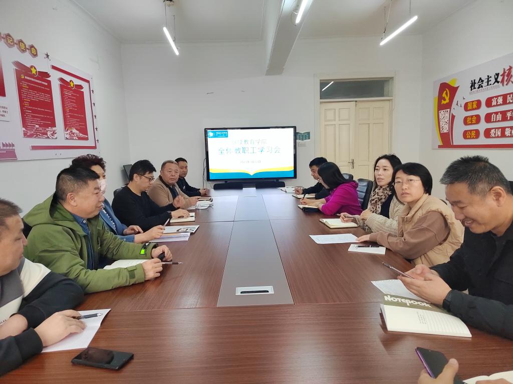 3月22日下午,太阳成集团tyc122ccvip组织全体教职工专题学习会,全体教职工参加,何平书记主持。