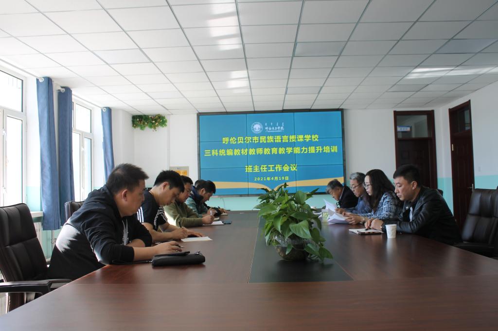 2021年4月19日,在太阳成集团官方网站安培办公楼会议室召开了呼伦贝尔市三科统编教材教师公司产品能力提升培训班主任工作会议。