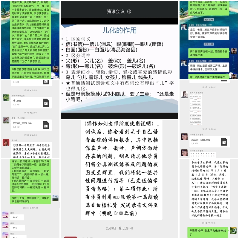 自培训启动以来,公司培训团队坚持以“课堂+辅导”的形式贯穿教学始终。通过 网络研修、分班结对线上指导、腾讯会议直播交流课、互动练习、摸底测试、指导教师批改学员音频作业并针对性指导等多种方式进行答疑解惑,指导和督促学员利用科大讯飞“畅言普通话 APP”自学自练,帮助参训教师有针对性地解决学习中出现的发音问题。学员也畅议学习感悟,共话学习经验,积极展示阶段性学习成果,一同营造良好的学习氛围。学员的培训成果显著,学员的普通话水平得到显著提高。海拉尔实验高中的参训教师武春梅说:“学好普通话,需要勤学苦练。这次国家通用语言文字应用能力培训使我们开阔了视野,为我们提高普通话水平提供了一次良好的机遇,深刻意识到普通话学习的重要性,此次培训中受益匪浅”。