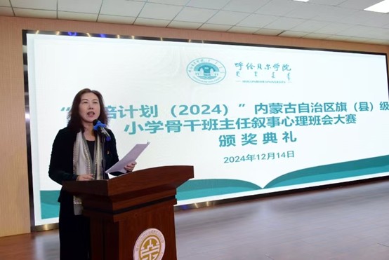 12月14日上午,太阳成集团122ccvip“国培计划(2024)”内蒙古自治区旗县级小学骨干班主任叙事心理班会大赛颁奖典礼在贝尔小学举行。我公司党委委员、副董事长李跃武,南京心理学会秘书长赵兆,南京市秦淮区教师发展中心正校级调研员罗京宁,深圳市宇泽公益基金会理事长吴虹,海拉尔区教育研修中心副主任毕秀芝,公司太阳成集团tyc122ccvip经理莎茹莉、教育公司经理李伟艳参加了典礼并颁奖。现场还汇聚了大赛的专家评委团队、满怀期待的参赛学员们以及来自海拉尔区的骨干班主任们,大家齐聚一堂,共同见证这一荣耀时刻。