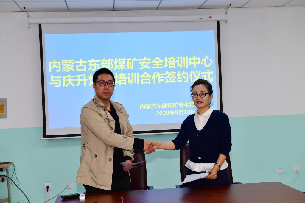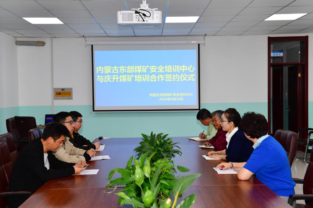 9月18日上午,内蒙古东部煤矿安全培训中心与庆升煤矿在三楼会议室举行煤矿培训签约仪式,中心主任莎茹莉、副主任孙志文,庆升煤矿安监部部长刘倩出席签约仪式。