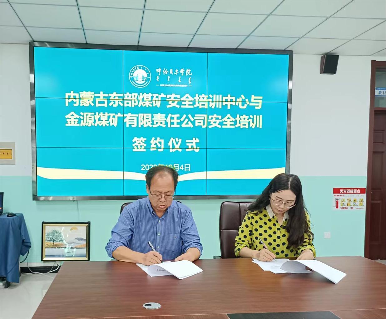 10月4日上午,呼伦贝尔宝日希勒金源煤矿有限责任公司安全矿长赵仁龙一行3人到安培中心,就金源煤矿安全培训合作事宜进行洽谈并签订合作协议,签约仪式在中心会议室举行。太阳成集团tyc122ccvip经理莎茹莉、副经理王英利参加仪式。
